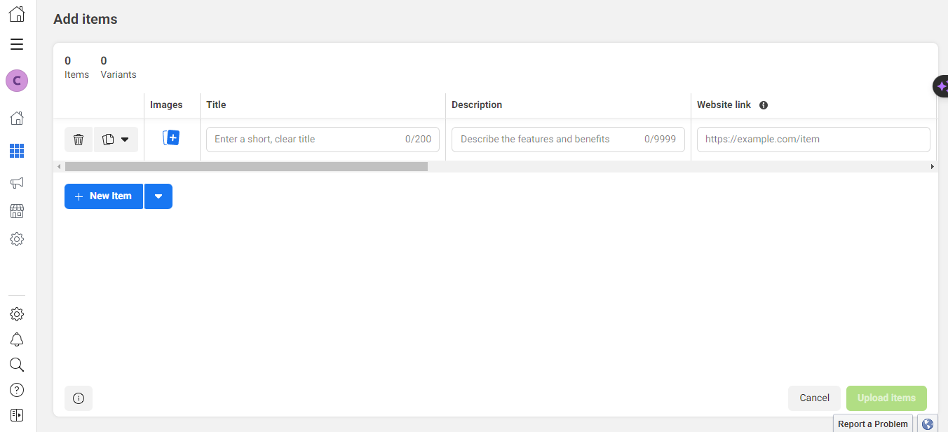 - Choose the upload method (Upload Product Info or Connect a partner platform). For now, select the Upload Product Info.