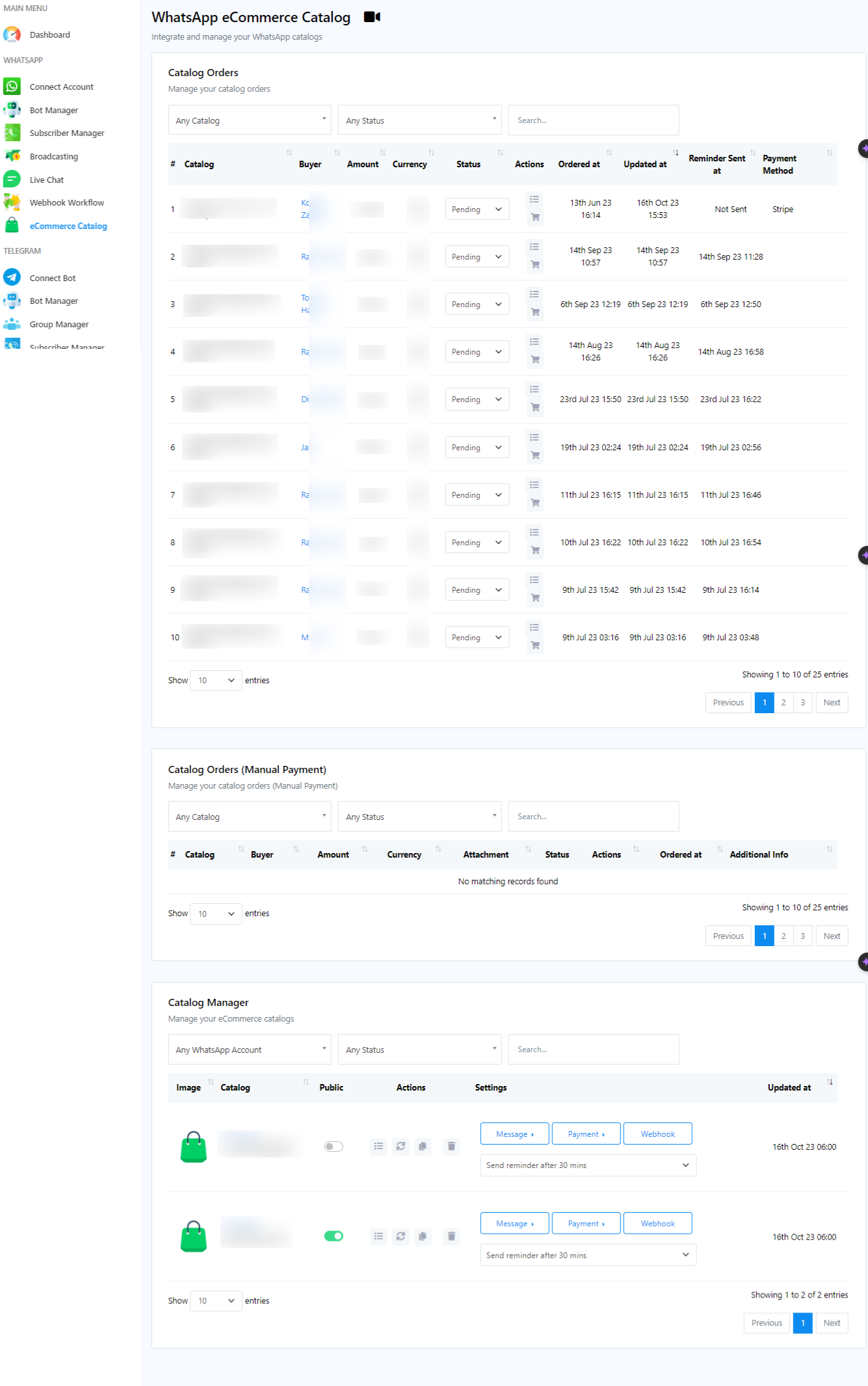 - You can view catalog orders and change the status of an order from the `Catalogue Order` at the top of the page.