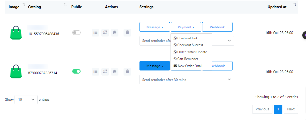 - You`ll find the catalog name and ID. There`s an option to enable or disable the public status.